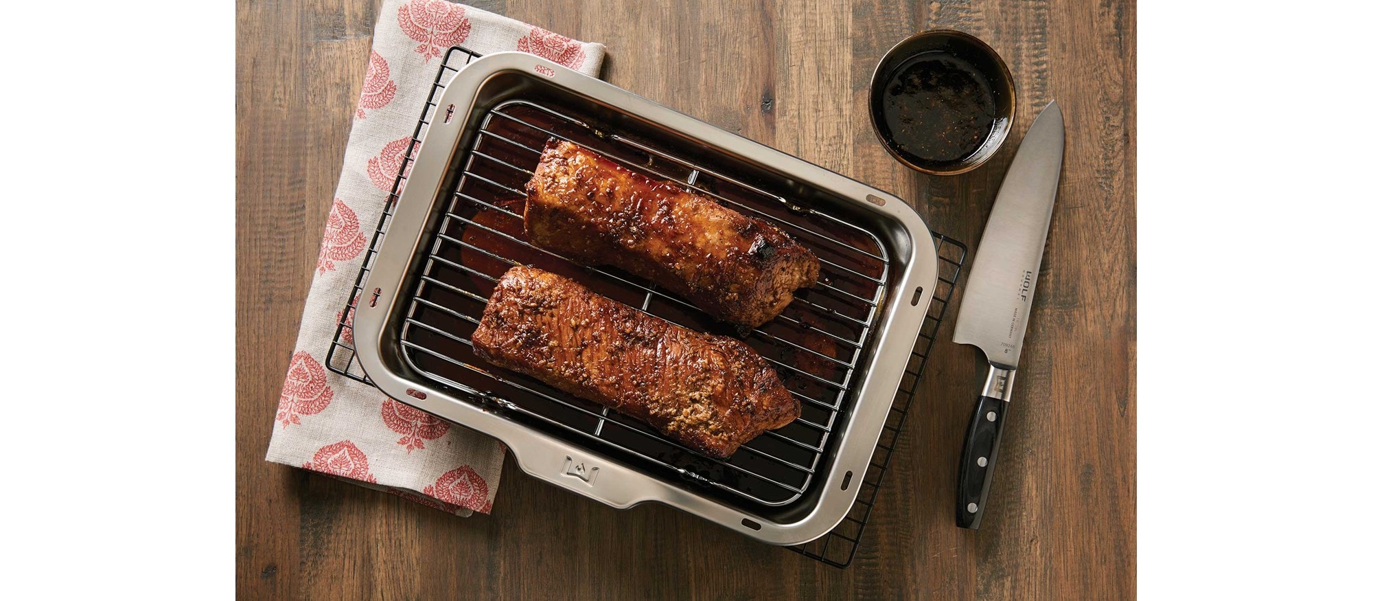 - Ajuste la temperatura de la sonda a 145 °F (62 °C) y ase hasta que suene la campanilla de temperatura de la sonda, de 20 a 30 minutos. Si lo desea, a mitad del tiempo de cocción, unte los solomillos con el glaseado que haya goteado al fondo de la bandeja.