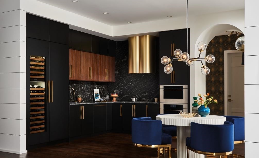 - El diseño elegante y moderno, la puerta abatible y el estilo integrado se combinan a la perfección con un conjunto completo de electrodomésticos Sub-Zero, Wolf y Cove de estilo similar